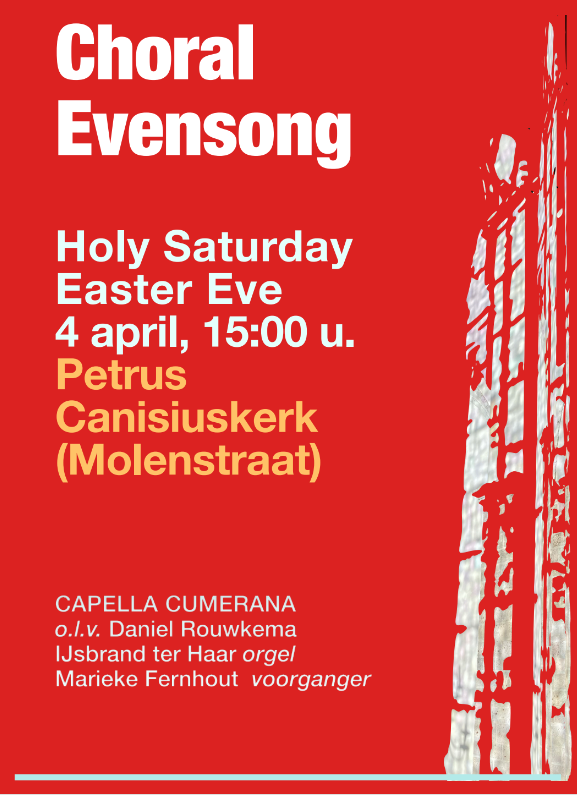 Vanwege de Expositie Ver & Nabij in de Stevenskerk vindt deze Evensong in de Petrus Canisiuskerk in de Molenstraat en is de start om 15:00 uur