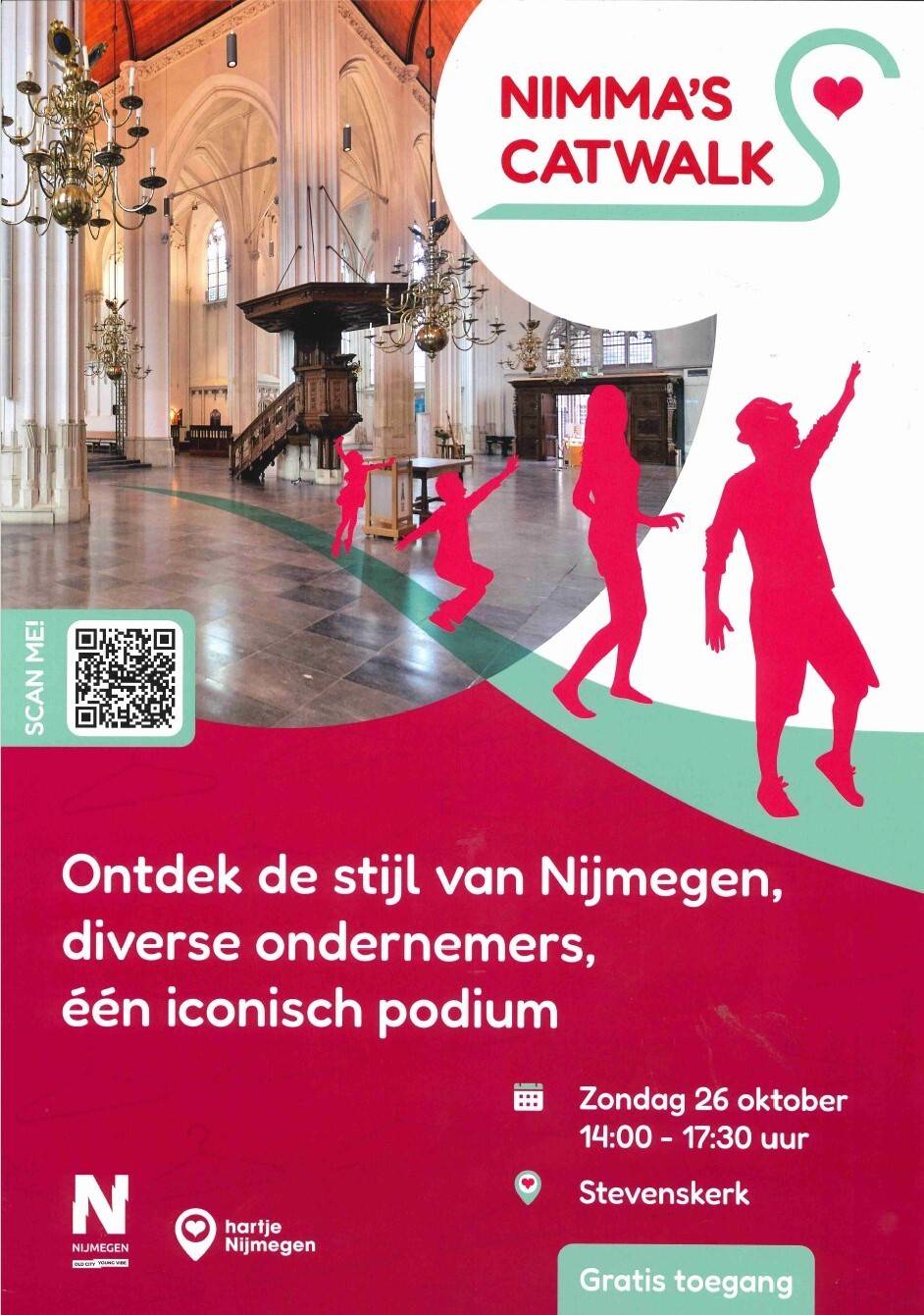 Vandaag verandert de Stevenskerk in hartje Nijmegen in een stijlvol modepodium: Nimma’s Catwalk. Op deze koopzondag presenteren diverse ondernemers hun collecties aan het grote publiek. Bezoekers worden verrast met de veelzijdigheid van de Nijmeegse modewereld tijdens de spectaculaire modeshow. Van vintage en alledaagse mode tot eigen ontwerpen, toffe kapsels, sport- en kinderkleding – er is voor ieder wat wils!