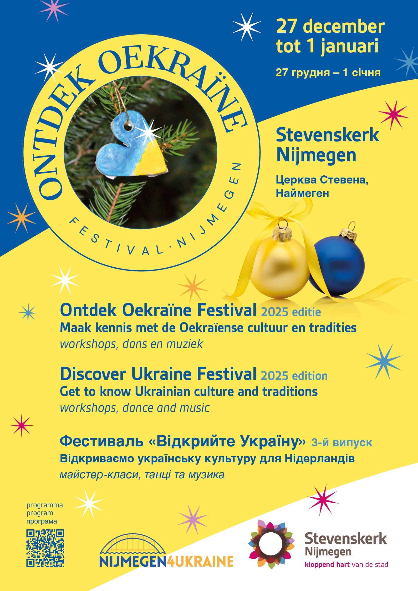 Tijdens de derde editie van het winterevenement 'Ontdek Oekraïne' zal de Stevenskerk weer de focus leggen op Oekraïne. Met een gevarieerd programma voor jong en oud (traditionele liederen en kerstliederen, workshops en het klassieke muziekconcert) streeft de Stevenskerk ernaar de cultuur van Oekraïne dichterbij te brengen. Om de Oekraïners aan de frontlinies te helpen, zullen we tijdens alle geplande evenementen ook donaties inzamelen.