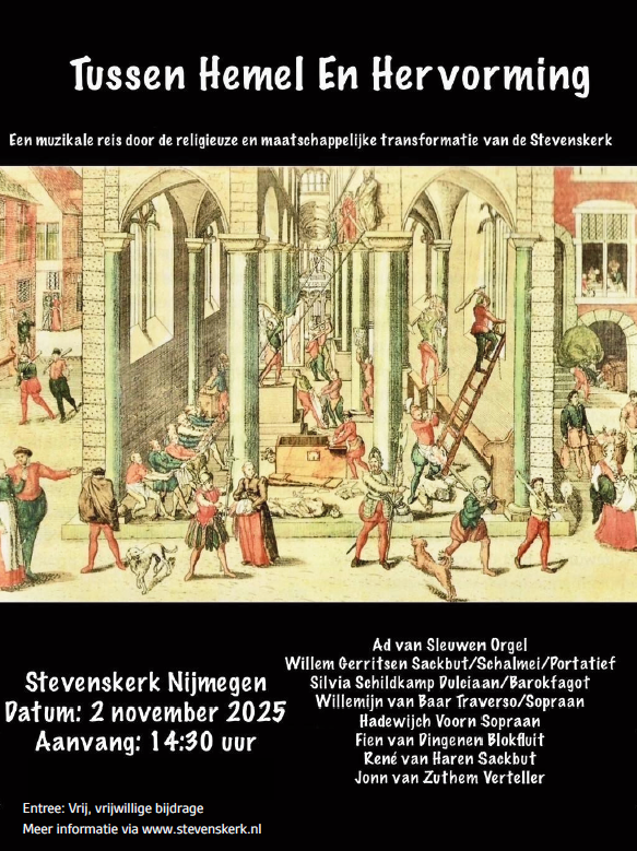 Dr. Jonn van Zuthem treedt op als verteller en zal tijdens het concert historische momenten uit de geschiedenis van de Stevenskerk duiding geven. Daaromheen worden composities uit de verschillende tijdsvakken ten gehore gebracht. Van Zuthem illustreert welke uitwerking deze momenten hebben gehad op de Nijmeegse bevolking en hoe dat geleid heeft tot, wat hij noemt, ‘het Nijmeegs DNA’.