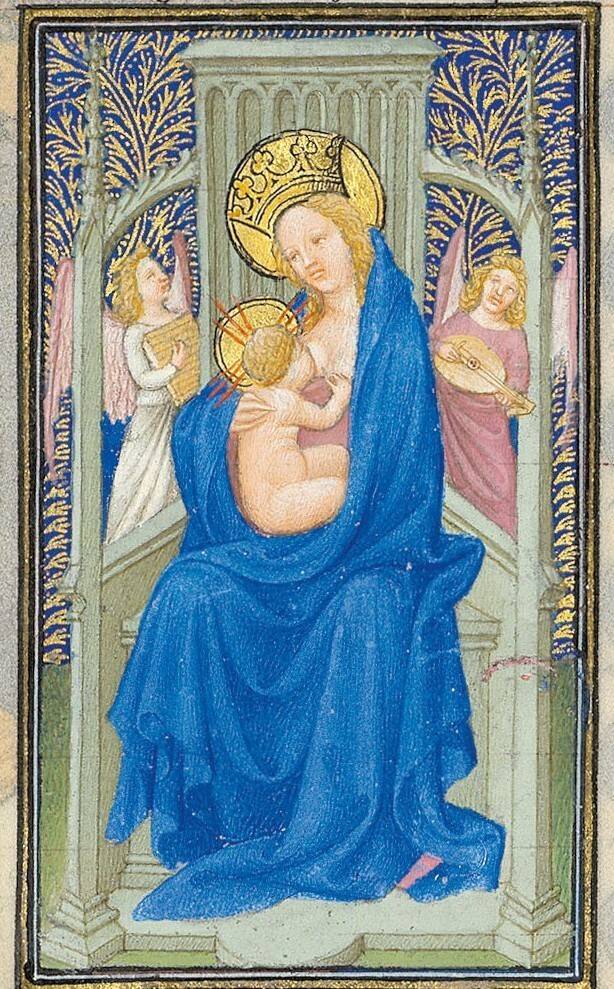 Maria en kind op troon (detail), uit Les Belles Heures, 1405-1408/1409 (collectie The Metropolitan Museum of Art, New York)