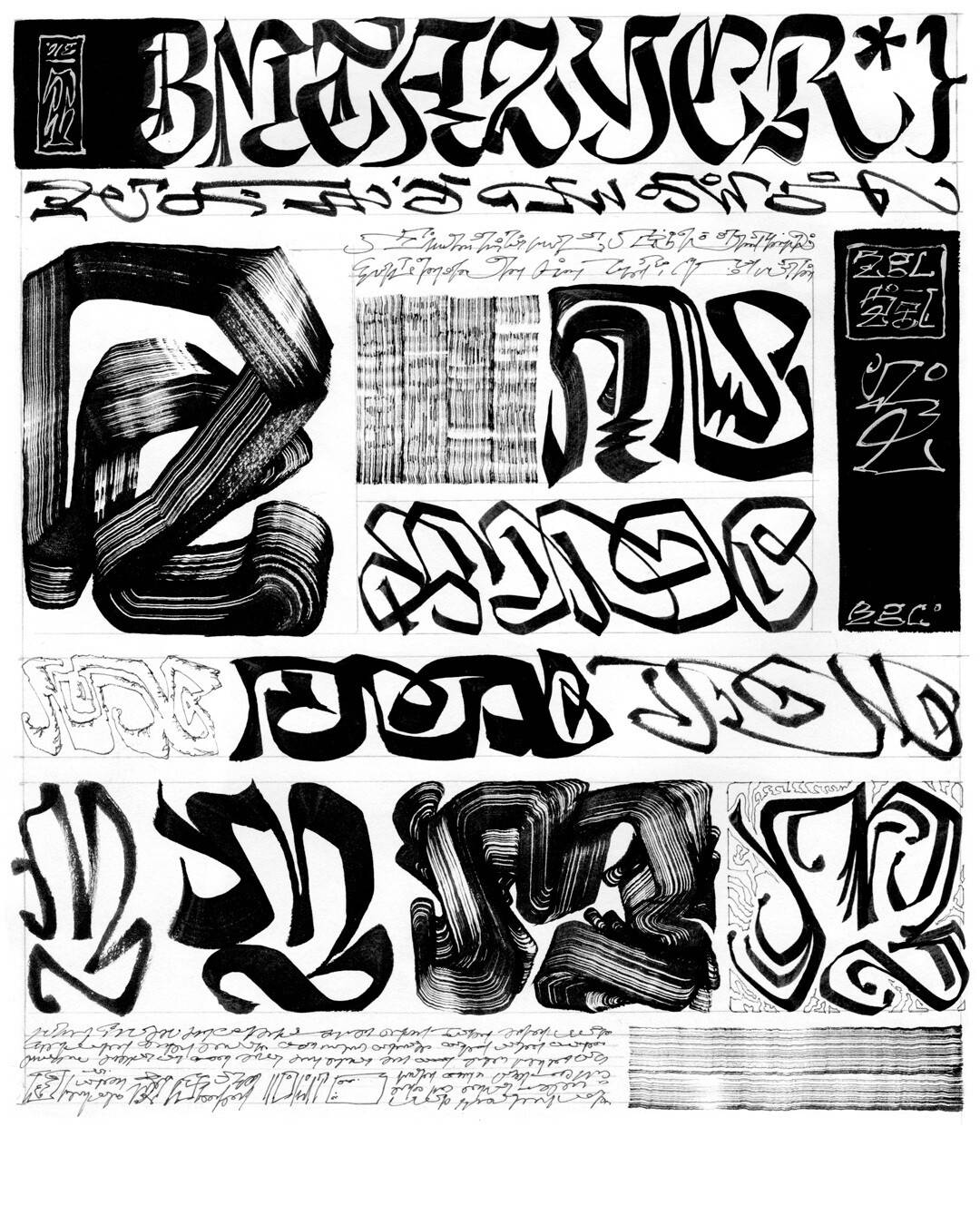 Vincent de Boer, Pagina uit schetsboek, 2024, inkt op papier, 42x30 cm (collectie kunstenaar)